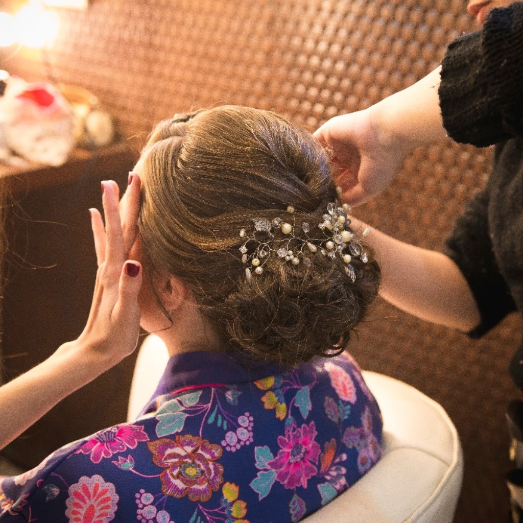 En nuestro estudio en Caballito (CABA) podrs realizar tu prueba de maquillaje, peinado y probar toda la lnea propia y exclusiva de tocados, tiaras y accesorios con diseo de autor, nicos e irrepetibles como vos.